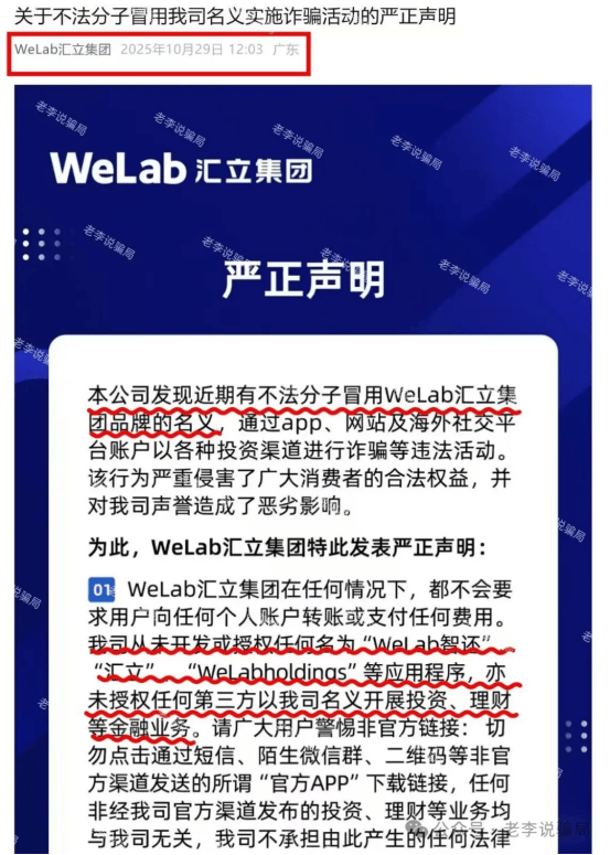 冒用香港“汇立银行”名义,承诺每日0.8%–2.3%高回报,推出多款虚假理财产品。2025年10月29日,汇立集团已发布声明称从未开发此类APP。